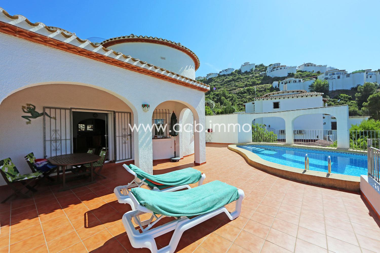 Esta propiedad ofrece muy buenas comodidades: vista panorámica, muy soleada, aire acondicionado en todas las habitaciones, chimenean, ventanas de aluminio con doble acristalamiento, persianas, mosquiteras, piscina privada de 8 x 4 m, calentador de agua solar, terraza, cocina de verano, garaje con puerta automática, trasteros en sótano, parking exterior, alarma, TV Sat, internet, etc. Se vende amueblada