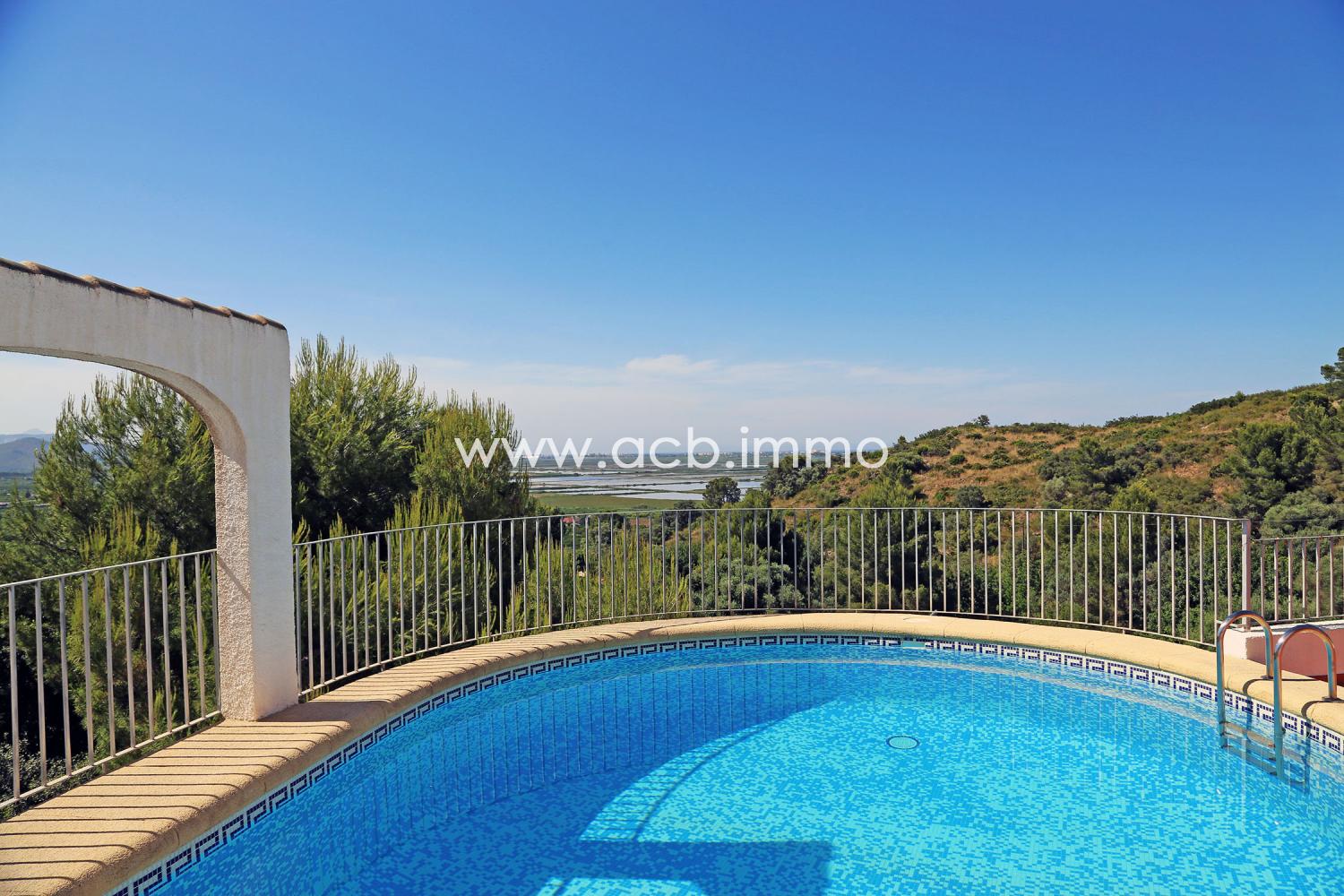 La gran terraza ofrece un maravilloso panorama del parque natural, las colinas circundantes y la lejana línea del horizonte sobre el mar. La piscina de 8x4m está perfectamente orientada y se beneficia de un sol perfecto. La terraza también tiene una cocina de verano, una ducha y un aseo.