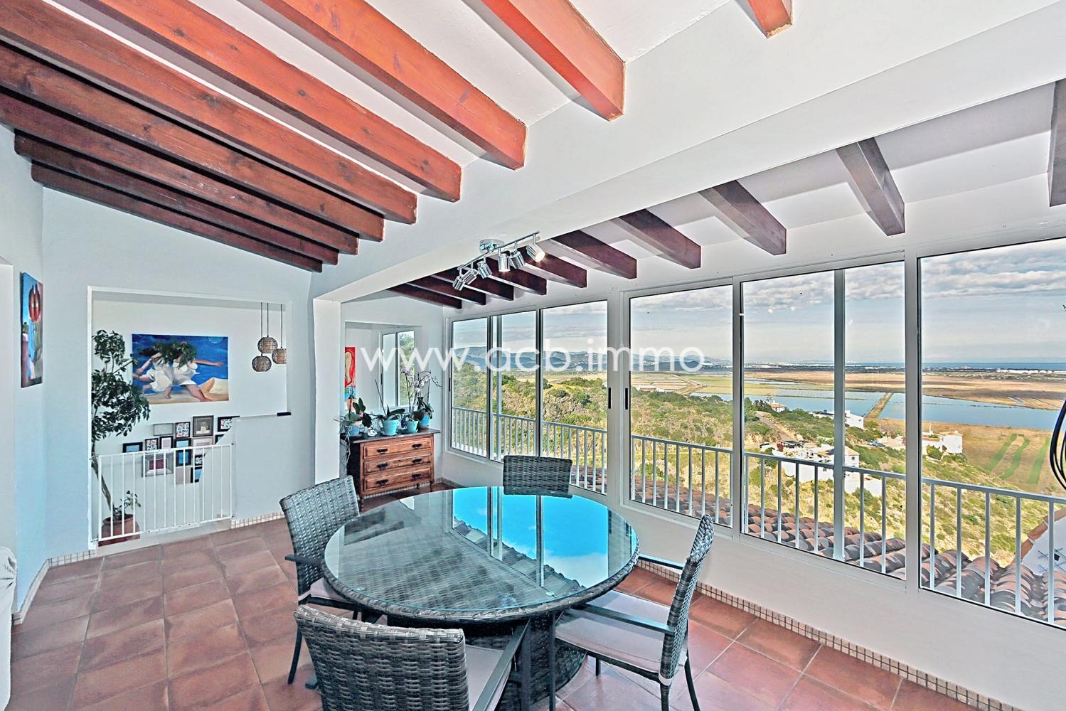 Parmi les prestations : chauffage central au gaz, adoucisseur d’eau, carport, portail électrique, fenêtres en double vitrage, TV satellite, internet, véranda vitrée (naya) et vue mer.